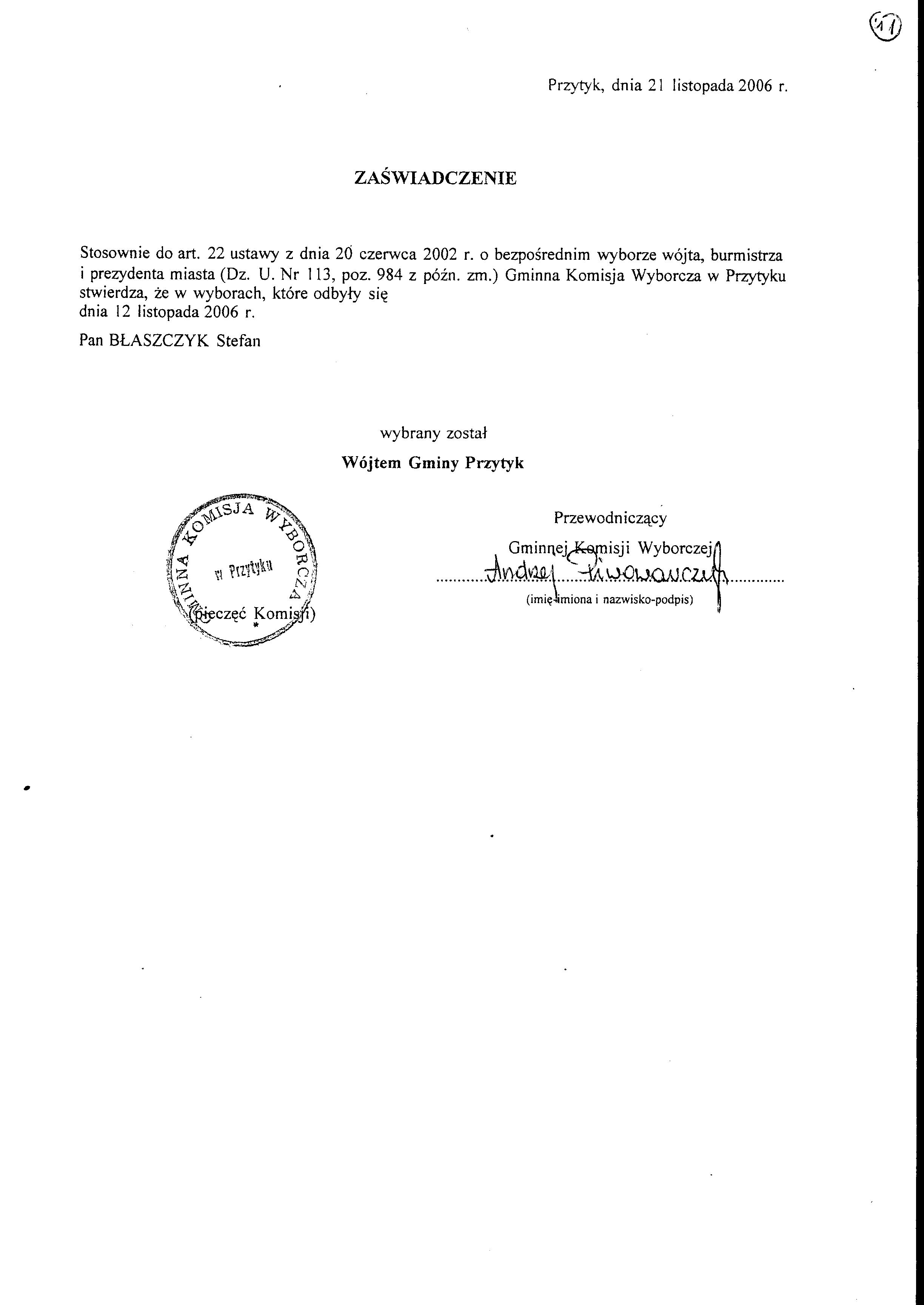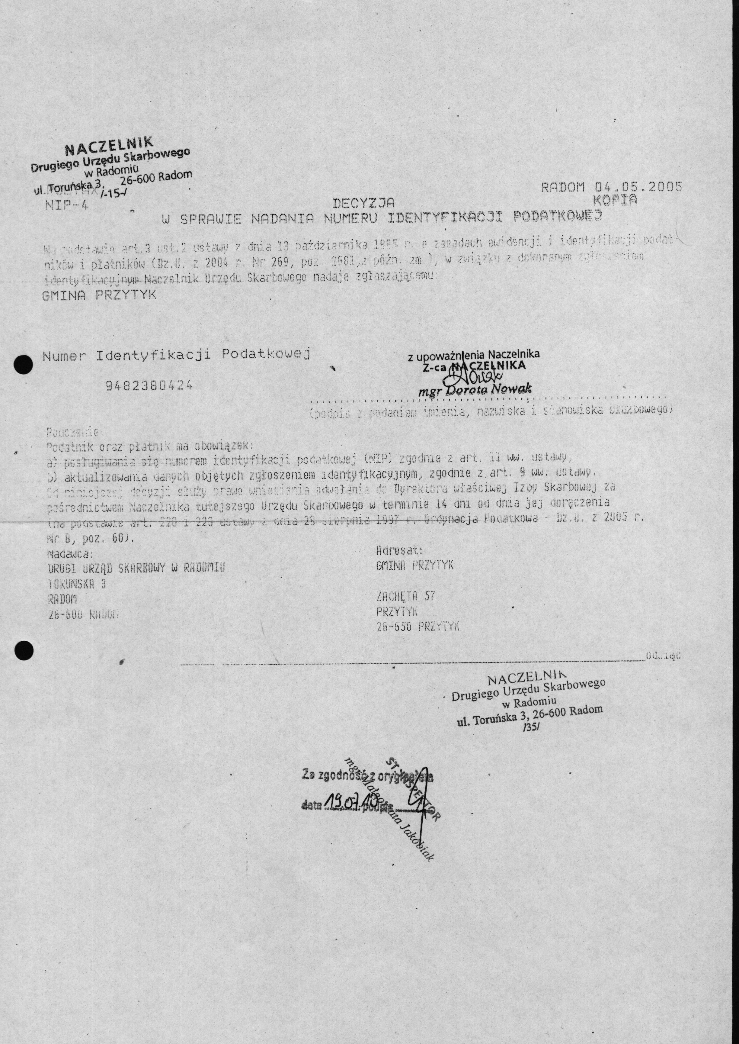 | Gmina Przytyk informuje, że w trybie przetargu nieograniczonego; na ; Udzielenie i obsługę kredytu długoterminowego w kwocie 2.440.766,00 zł na sfinansowanie zadań inwestycyjnych pod nazwą; ” Budowa kanalizacji Przytyk- Podgajek”,” Budowa wodociągu w Wygnanowie”, Budowa drogi Studzienice – Dęba”,” Budowa drogi Wrzeszczów – Czarnocin”, „ Budowa ulicy Słowackiego I etap”, „ Budowa drogi Wygnanów przez wieś”, „ Budowa drogi Potkanna przez wieś”, „ Budowa drogi Słowików przez wieś” została zawarta umowa .... więcej>>> |