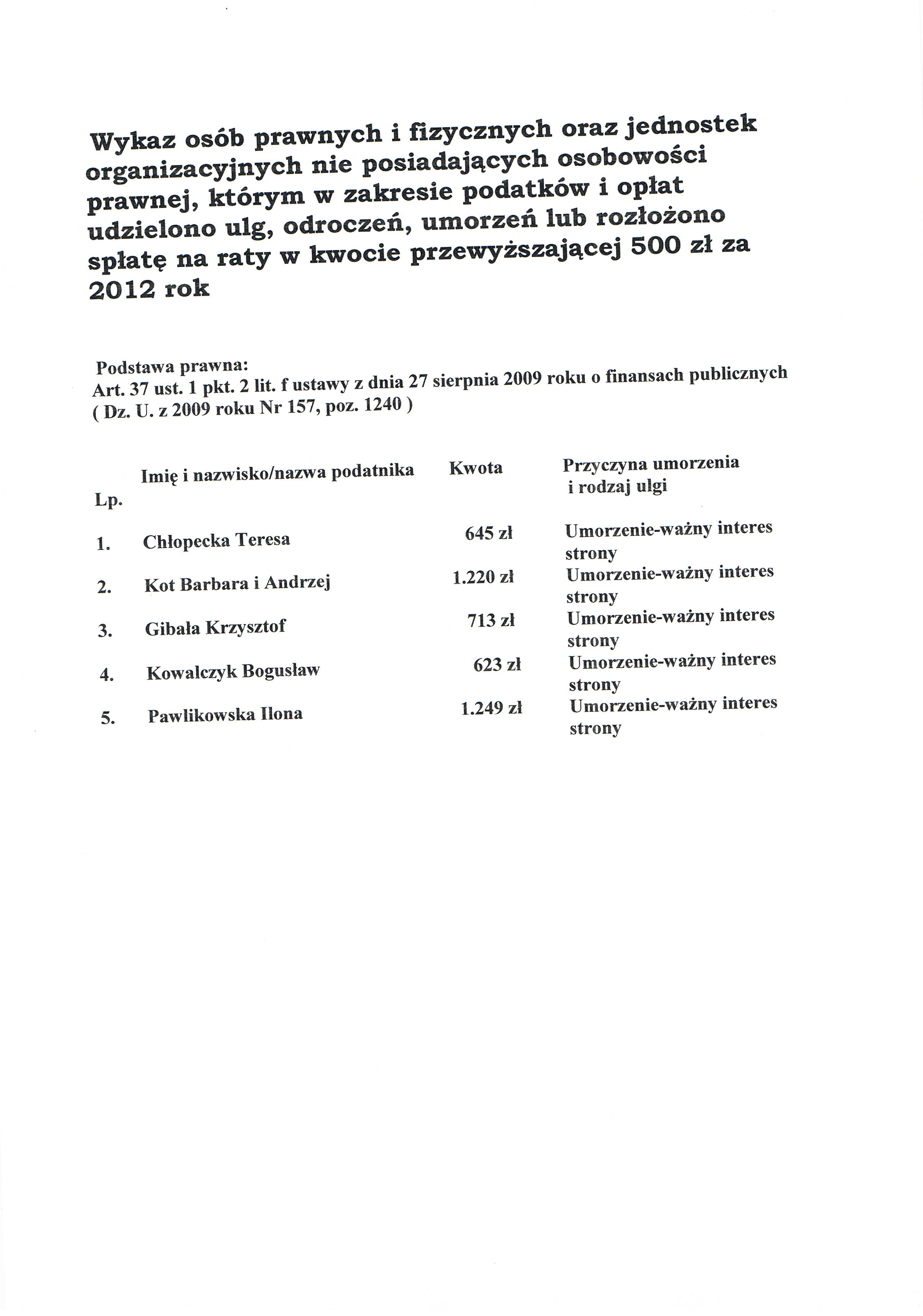 Opinia RIO o wykoaniu budżetu za 2012 rok wraz z informacja o stanie mienia komunalnego