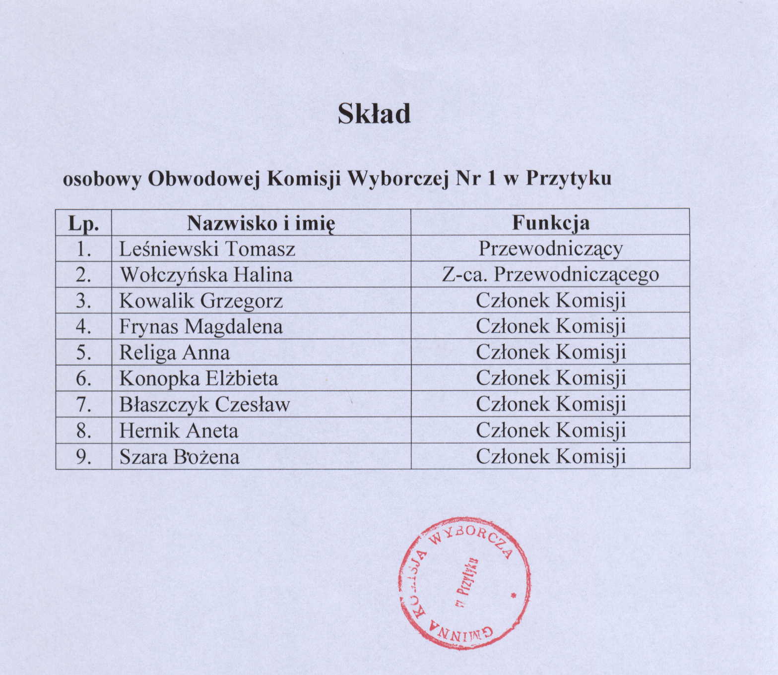 | Obwodowa Komisja Wyborcza Nr 1 w Przytyku |