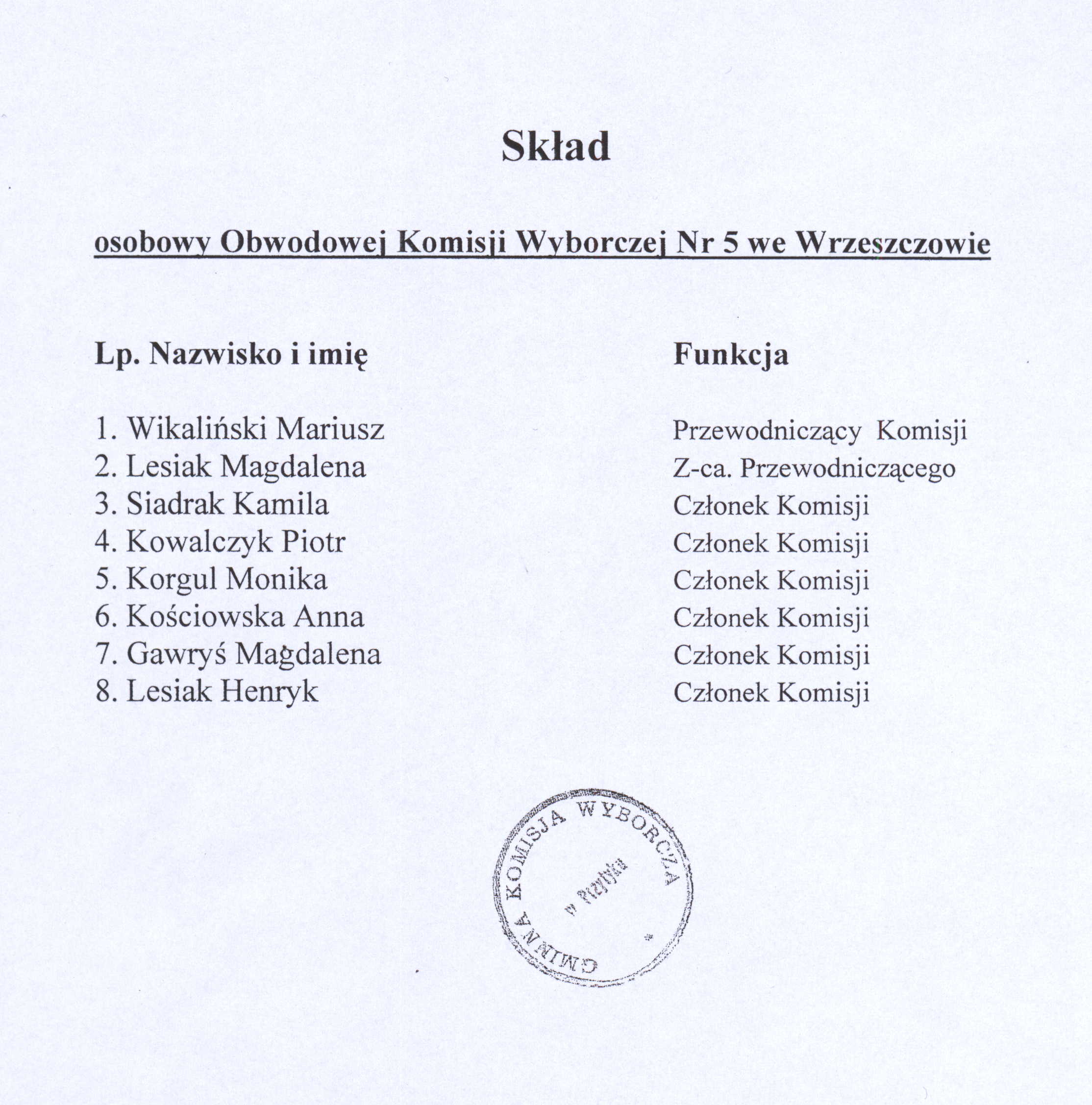 | Obwodowa Komisja Wyborcza Nr 5 we Wrzeszczowie |