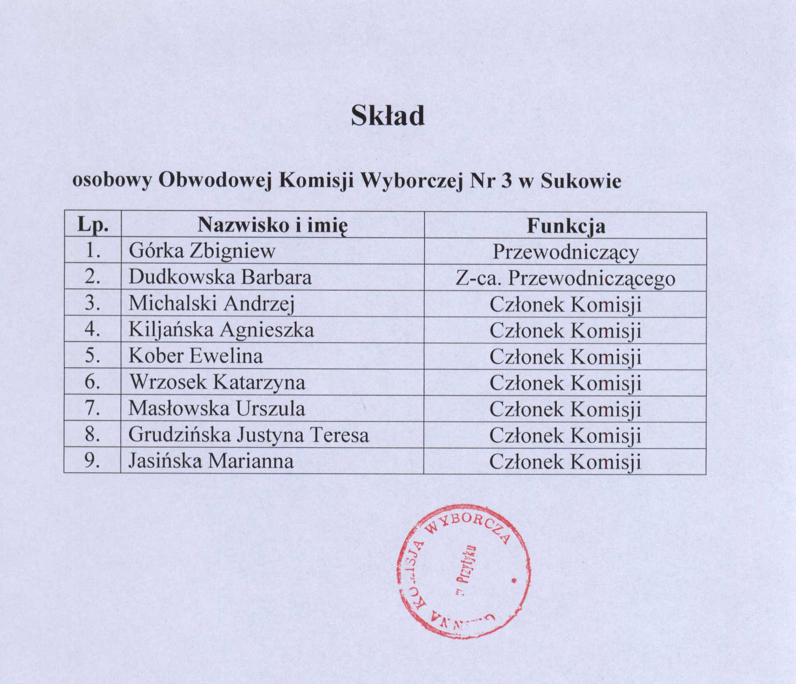 | Obwodowa Komisja Wyborcza Nr 3 w Sukowie |