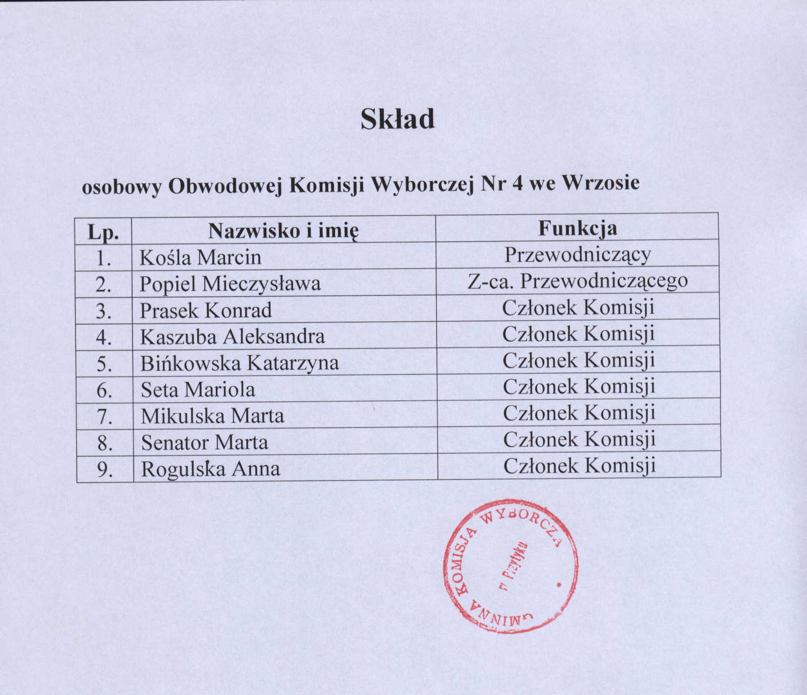 | Obwodowa Komisja Wyborcza Nr 4 we Wrzosie |