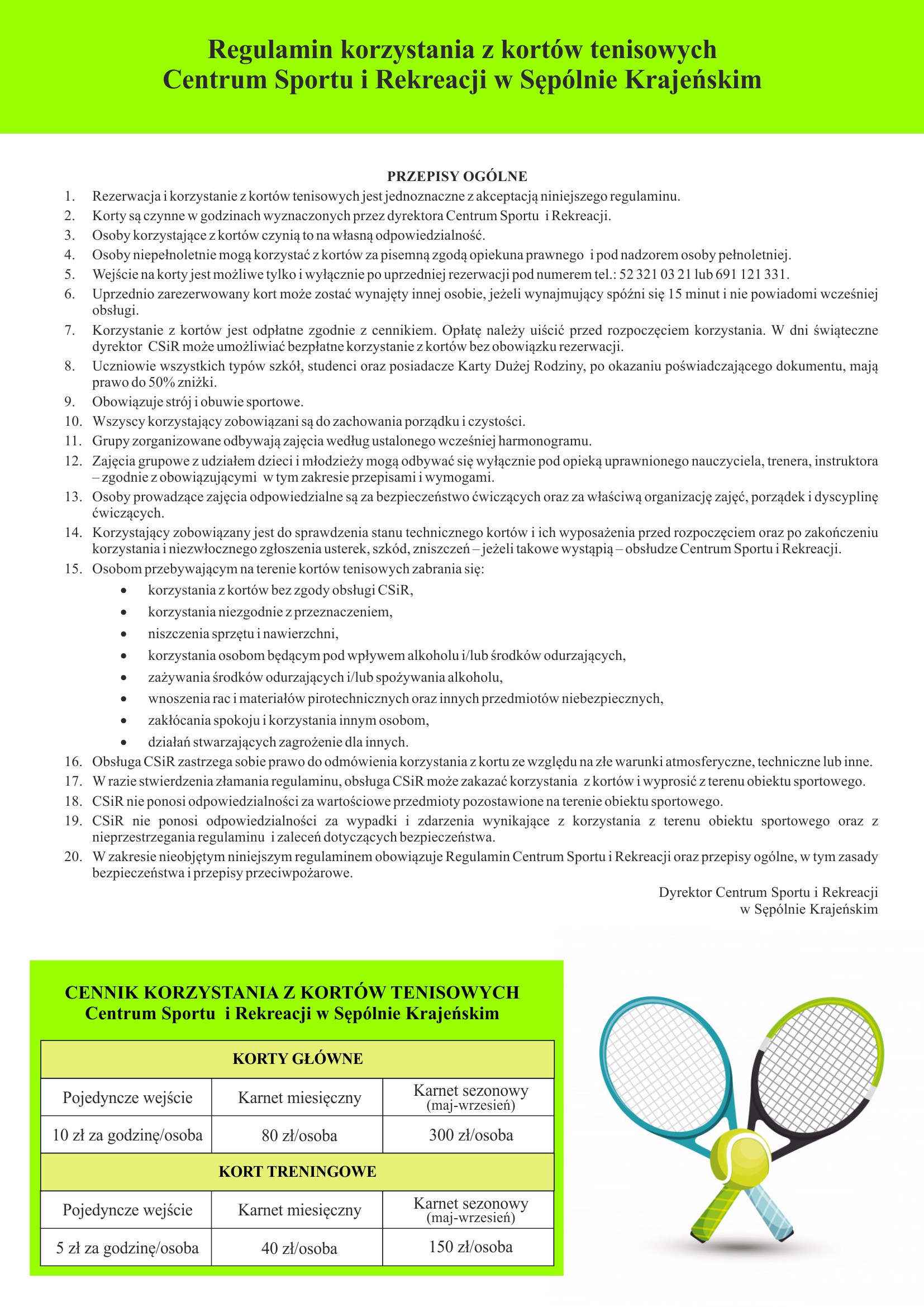 REGULAMIN KORZYSTANIA Z KORTÓW