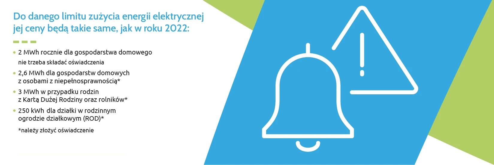 Cena energii będzie zamrożona na poziomie z 2022 r. dla poniższych limitów: