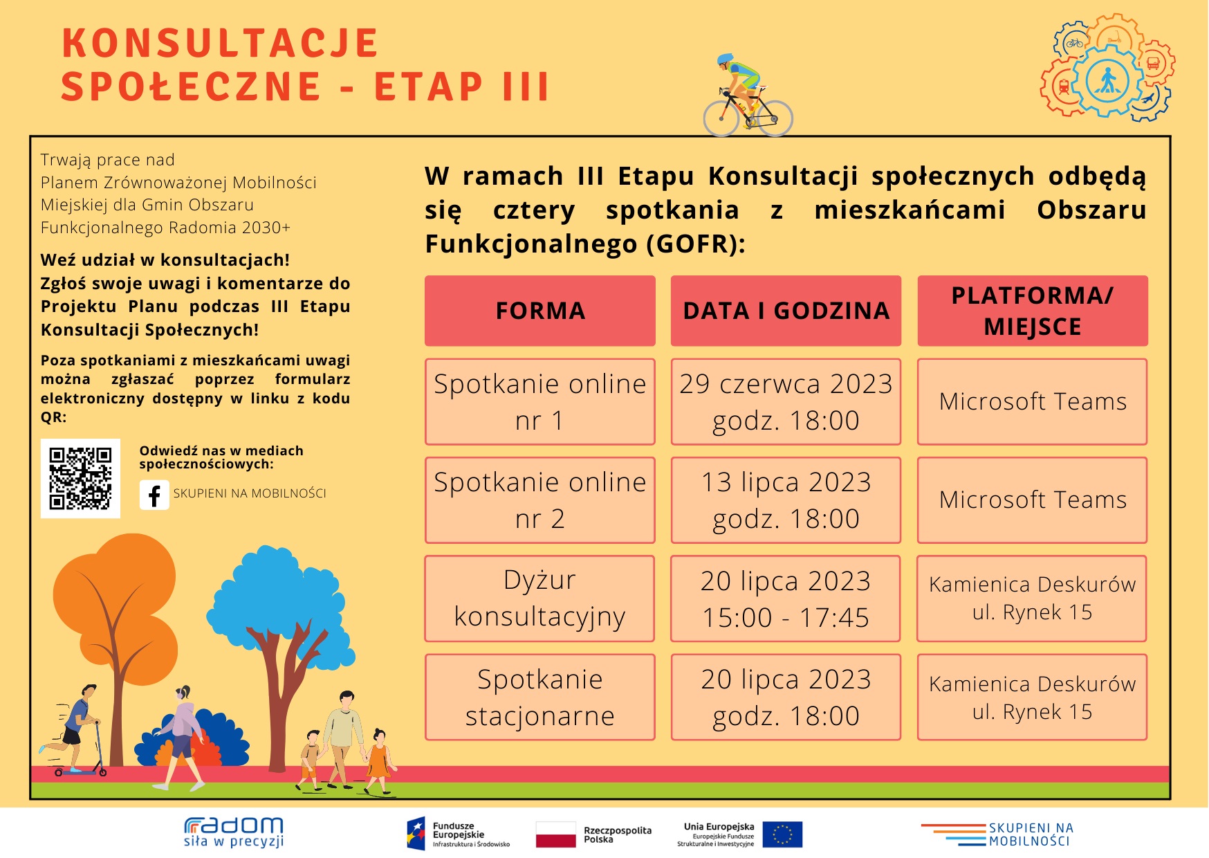 do udziału w konsultacjach w sprawie opracowania Planu Zrównoważonej Mobilności Miejskiej dla Gmin Obszaru Funkcjonalnego Radomia 2030+ od 21.06.2023r do 25.07.2023 r.