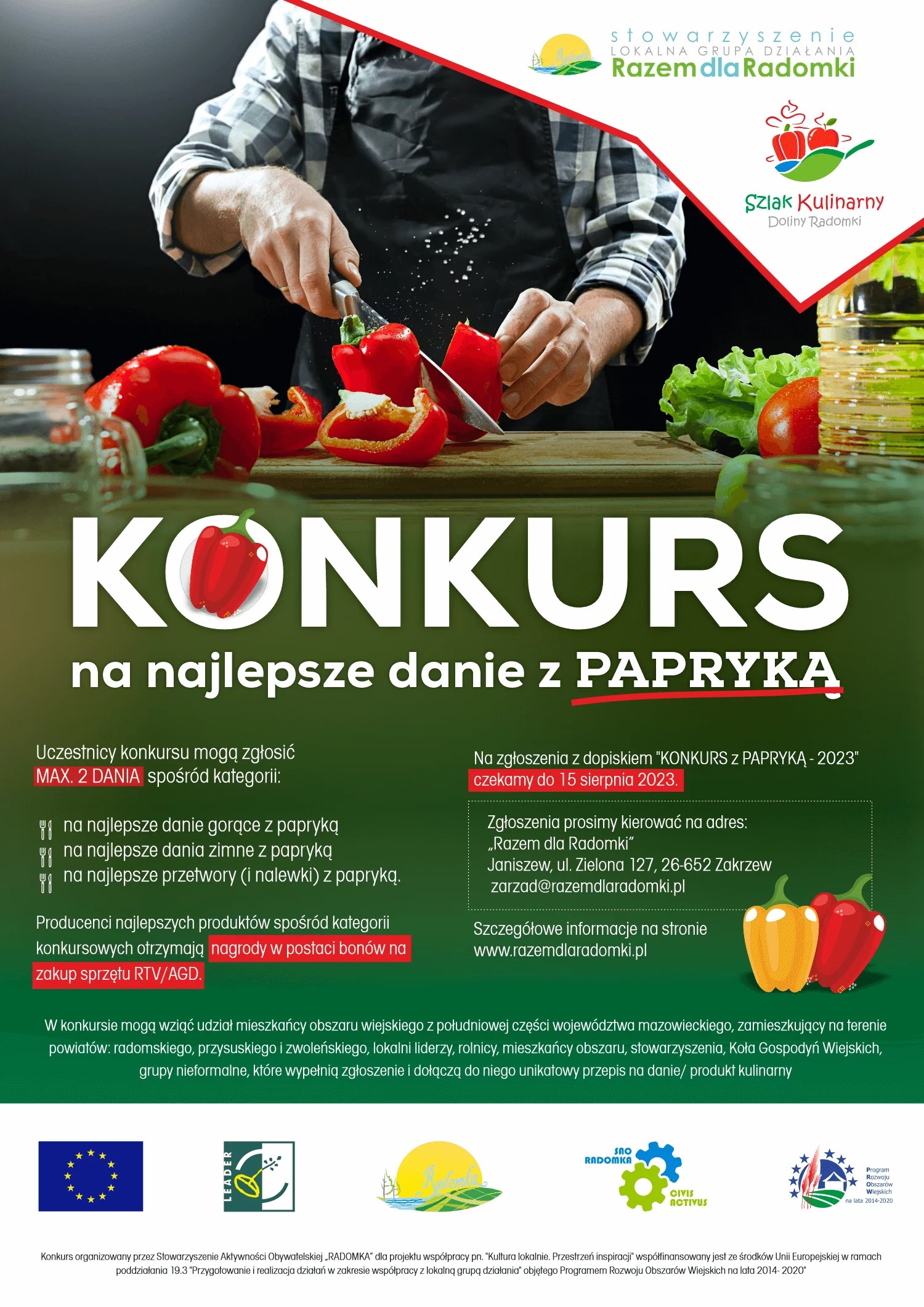 Stowarzyszenie Aktywności Obywatelskiej „RADOMKA wspólnie z partnerem Lokalną Grupą Działania „Razem dla Radomki” zaprasza lokalnych liderów, mieszkańców obszaru, stowarzyszenia, Koła Gospodyń Wiejskich, grupy nieformalne, do udziału w konkursie kulinarnym na najlepszą potrawę lokalną przygotowaną z papryką.