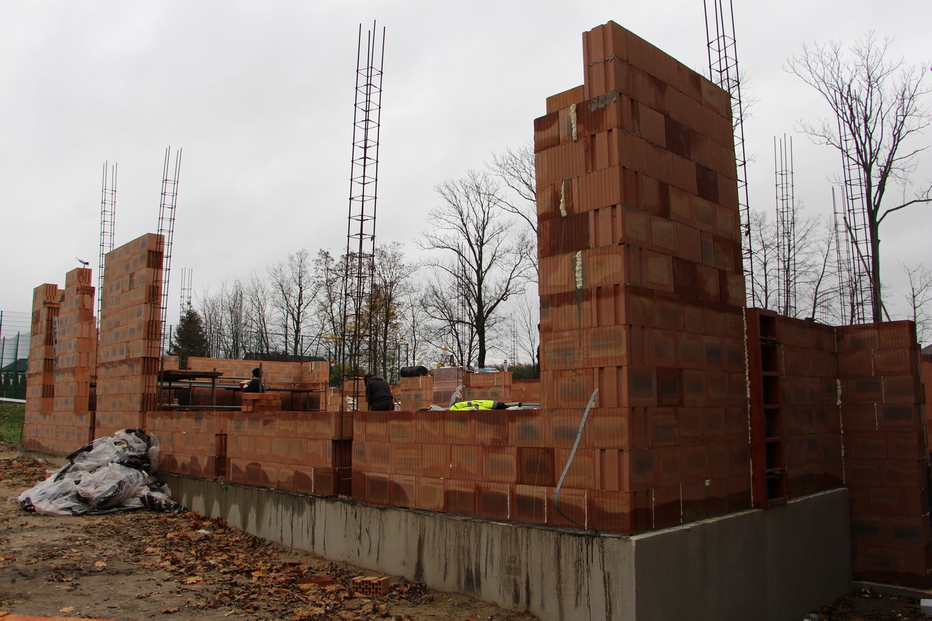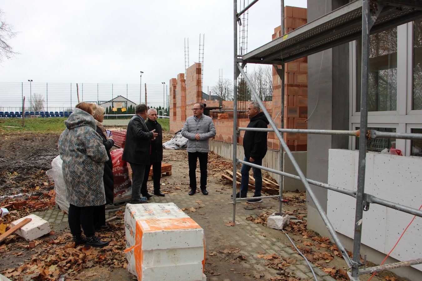 Obecnie trwają prace związane z elewacją budynku oraz prace murarskie związane z dobudowanym skrzydłem szkoły.