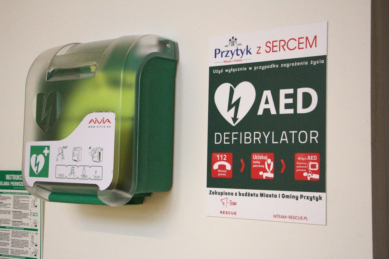 W budynku Urzędu Miejskiego w Przytyku zamontowano defibrylator AED (Automatyczny Zewnętrzny Defibrylator). To niezwykle cenne urządzenie ratujące ludzkie życie w przypadku nagłego zatrzymania akcji serca.