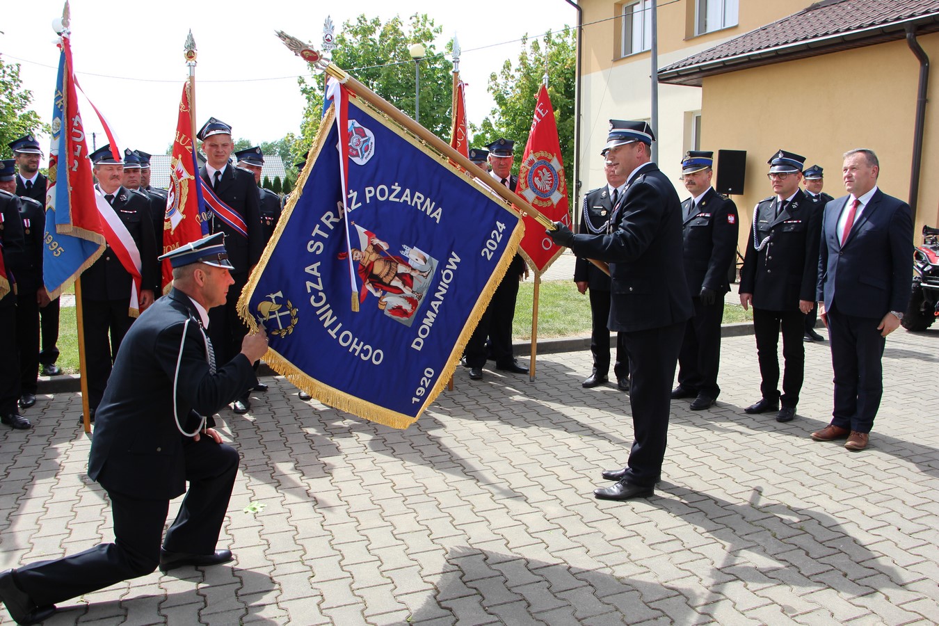Kulminacyjnym momentem było wręczenie sztandaru, który został przekazany na ręce Prezesa OSP w Domaniowie, dh. Dariusza Grotka. Poczet sztandarowy z honorem zaprezentował nowy symbol jednostki. Uroczystość była także okazją do przekazania pojazdu typu quad dla jednostki oraz wręczenia medali i odznaczeń zasłużonym strażakom. Złoty medal za służbę w pożarnictwie otrzymał Dariusz Senator oraz Bernard Senator. Srebrne odznaczenie otrzymał Sławomir Burski oraz Krzysztof Surmacz. Brązowy medal otrzymali: Rafał Potempski, Mariusz Ziółek, Dariusz Grotek, Michał Szymański, Dominik Szymański oraz Józef Puszka.
