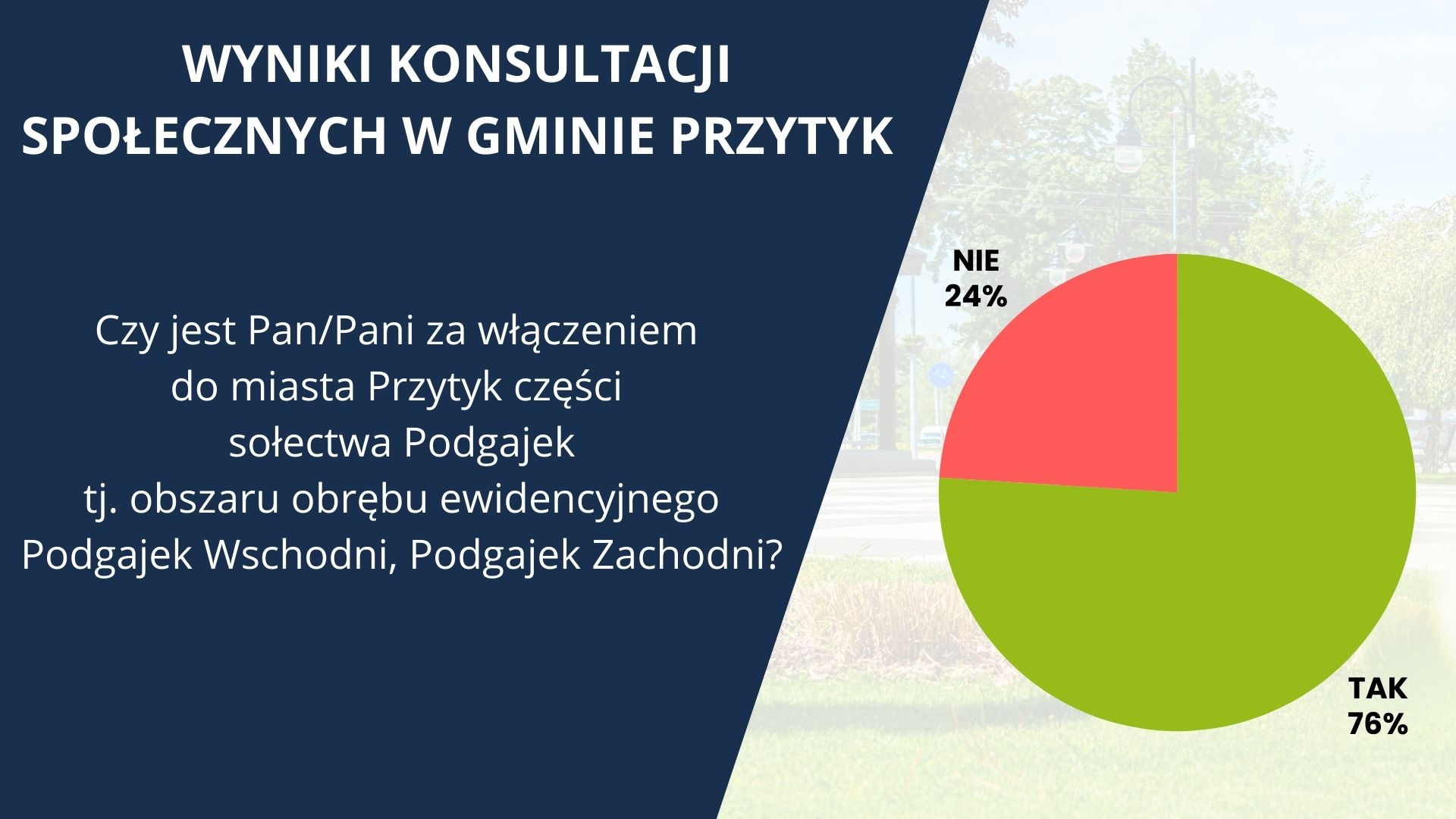Jak pokazują jej wyniki ponad 75% mieszkańców, którzy wypowiedzieli się w powyższej sprawie jest za włączeniem do miasta Przytyk części sołectwa Podgajek.