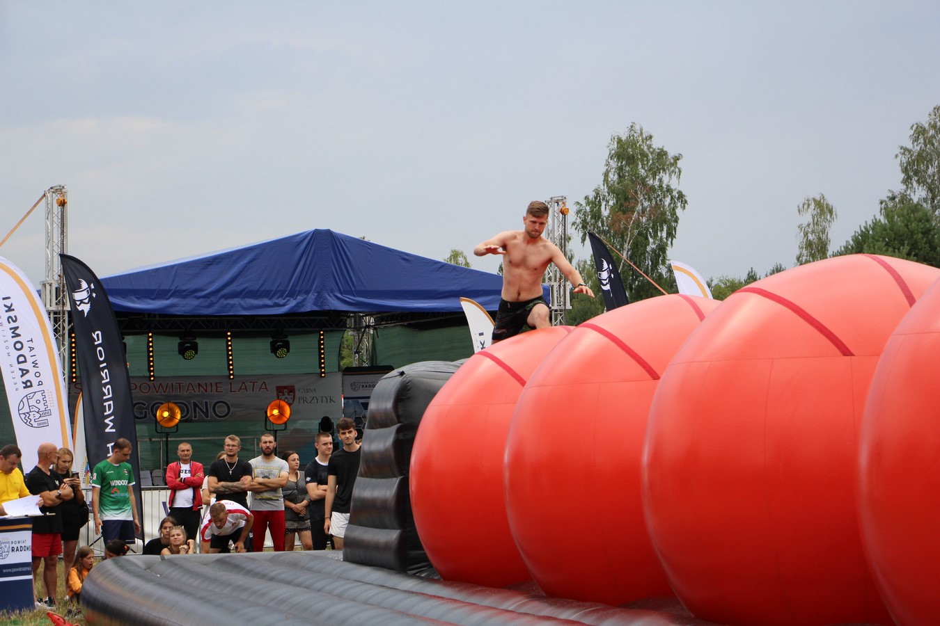 Nie zabrakło również atrakcji dla najmłodszych, którzy bawili się w pianie wypuszczanej przez strażaków z OSP w Rudzie Małej. Wiele radości dostarczyły również zawody na pompowanych torach przeszkód. Mimo deszczu, który utrudniał utrzymanie równowagi, uczestnicy rywalizowali z zaangażowaniem i humorem. Wśród mężczyzn triumfował Zalesice Team, natomiast w kategorii kobiet najlepsze okazały się "Małolatki" z Radomia. Po zawodach panie pokonały panów w zabawie na ruroskoczach, gdzie liczyła się przede wszystkim praca zespołowa.