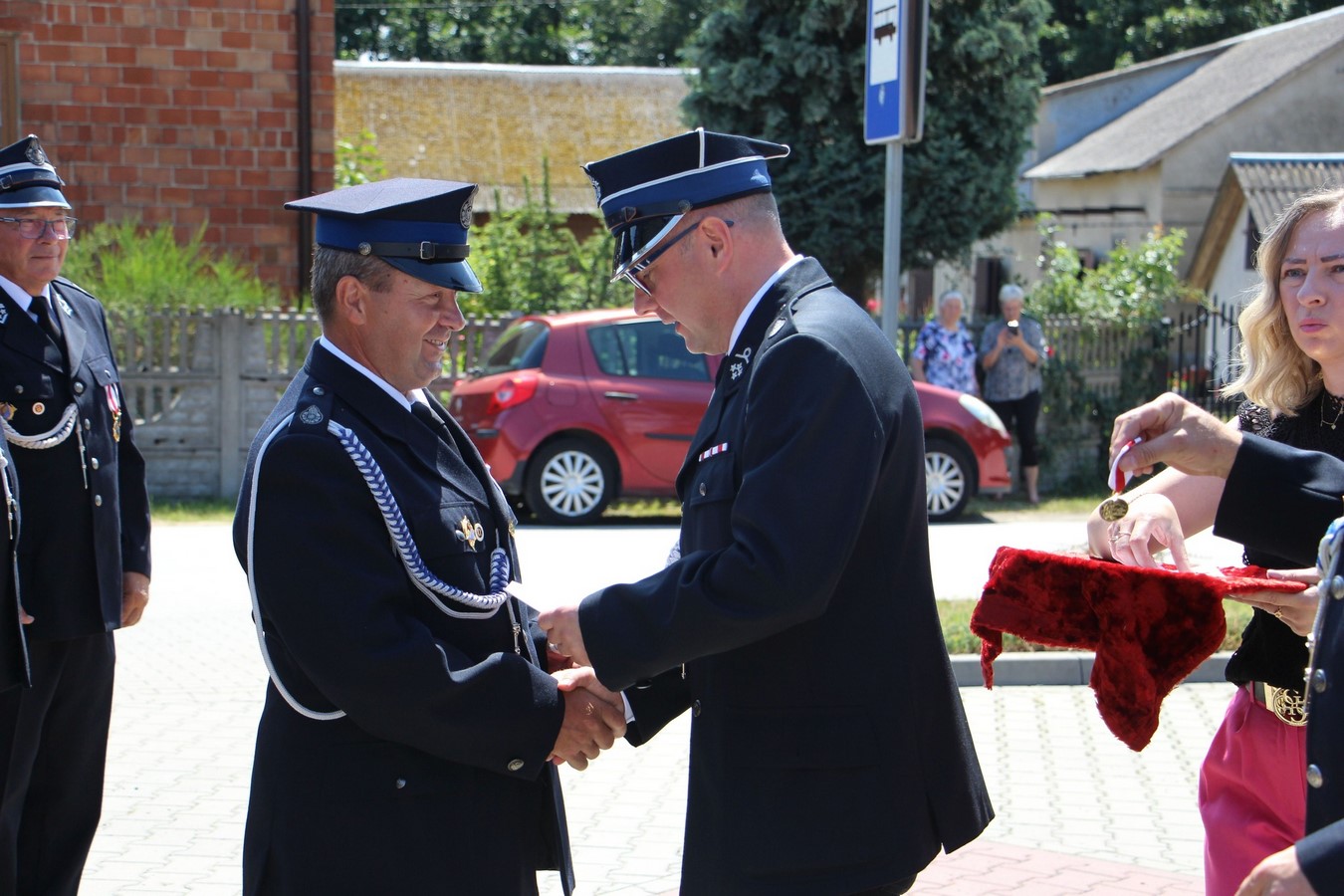 Na zakończenie zaproszeni goście pogratulowali zarządowi OSP we Wrzeszczowie oraz wszystkim jego druhom. Wśród prezentów złożonych na ich ręce pojawił się także ryngraf od Prezesa Związku Krajowego Piłsudczyków, gen. Stanisława Władysława Śliwy.