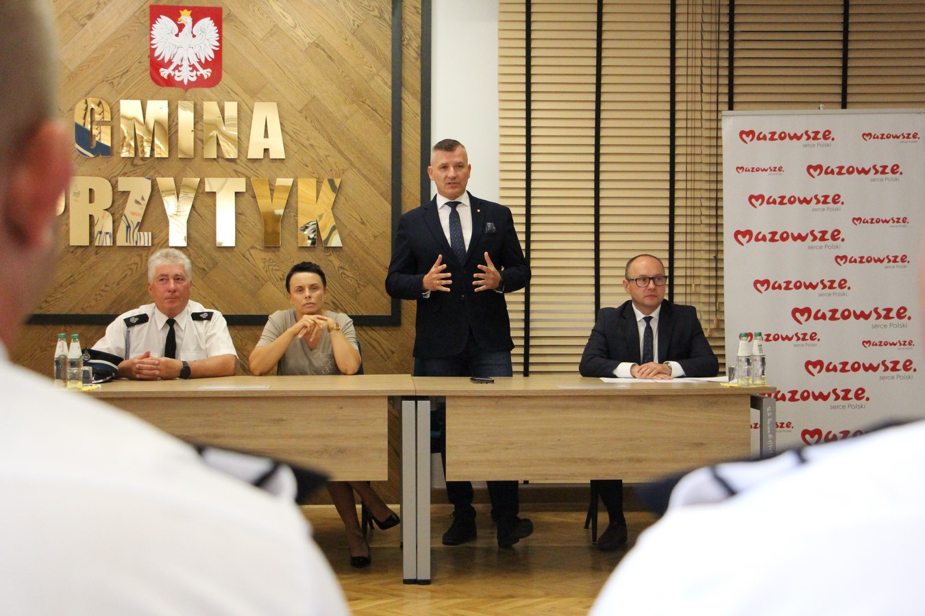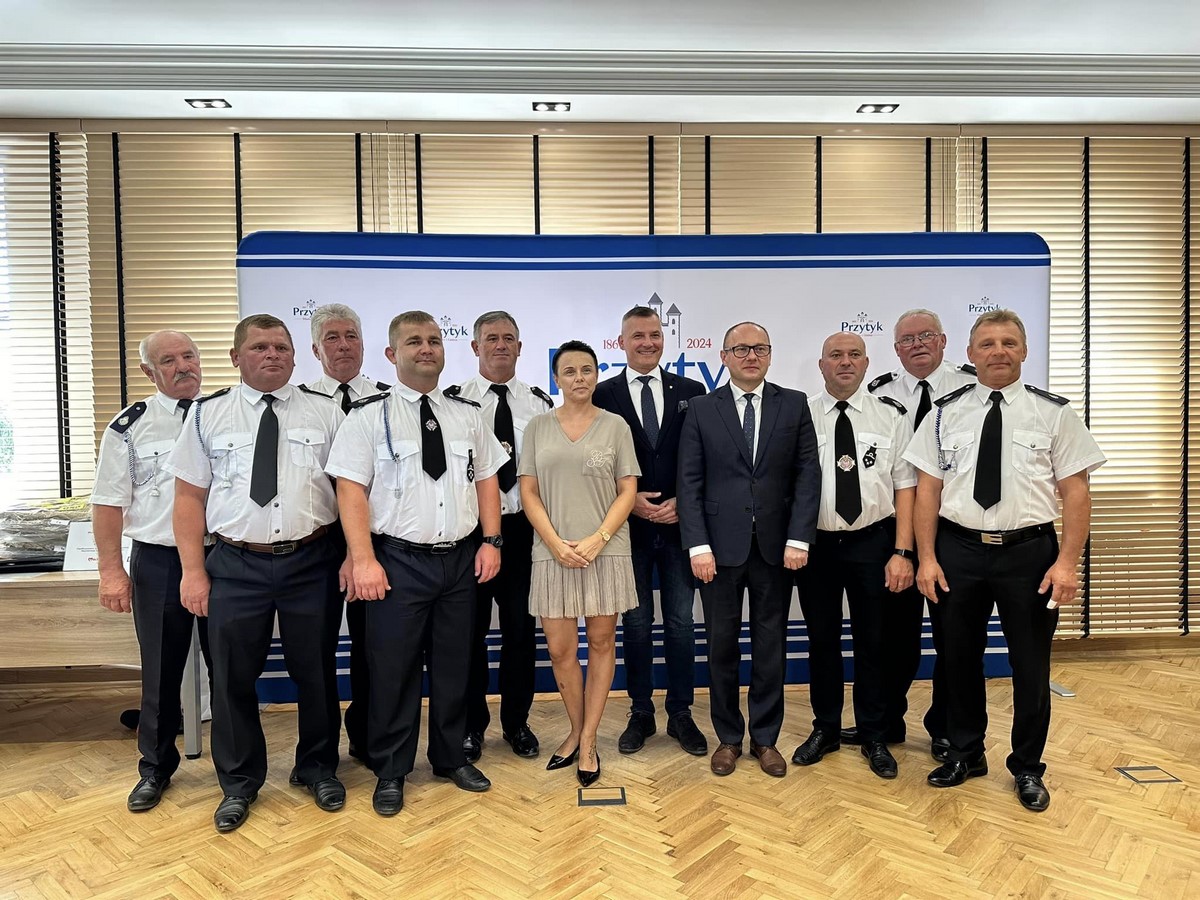 Uroczyste przekazanie sprzętu odbyło się 1 sierpnia w sali konferencyjnej Urzędu Miejskiego. W spotkaniu z druhami wzięli udział Wicemarszałek Województwa mazowieckiego Rafał Rajkowski, Radna województwa Magdalena Nowacka, Burmistrz Miasta i Gminy Przytyk Dariusz Wołczyński oraz Prezes Zarządu Gminnego OSP Sylwester Podymniak.