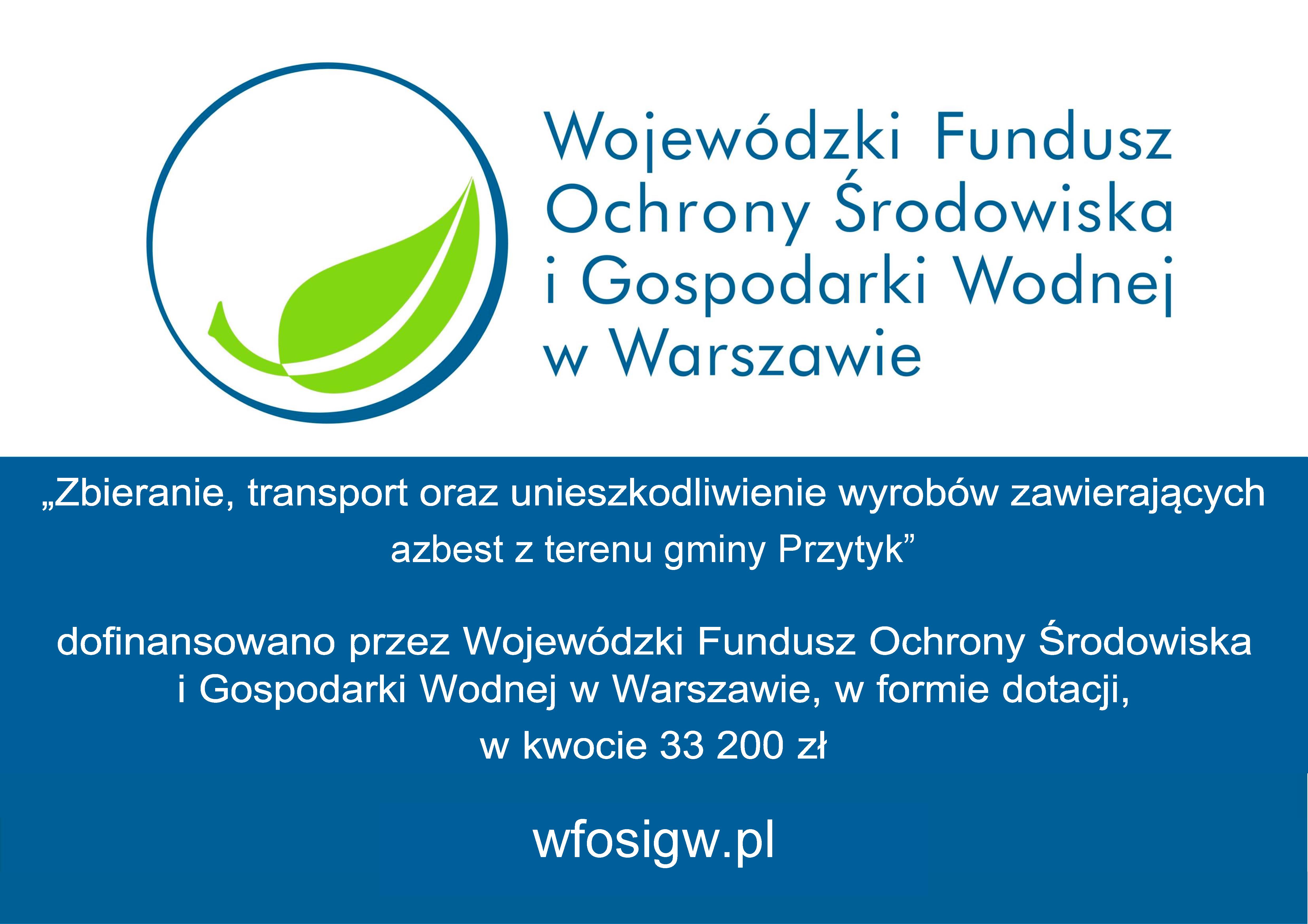 Gmina Przytyk otrzymała dofinansowanie na realizacje zadania pn. „Zbieranie, transport oraz unieszkodliwianie wyrobów zawierających azbest z terenu gminy Przytyk” z Wojewódzkiego Funduszu Ochrony Środowiska i Gospodarki Wodnej w Warszawie.