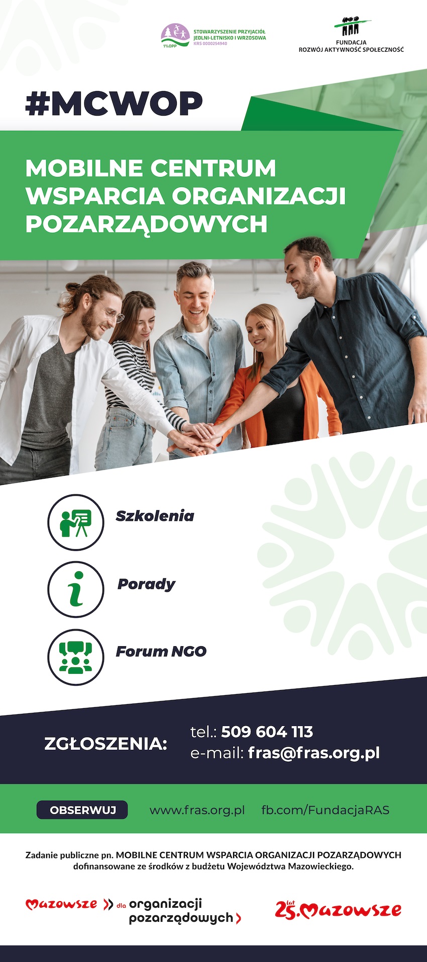Wsparcie organizacji pozarządowych prowadzone jest w ramach zadania MOBILNE CENTRUM WSPARCIA ORGANIZACJI POZARZĄDOWYCH dofinansowane ze środków Samorządu Województwa Mazowieckiego.