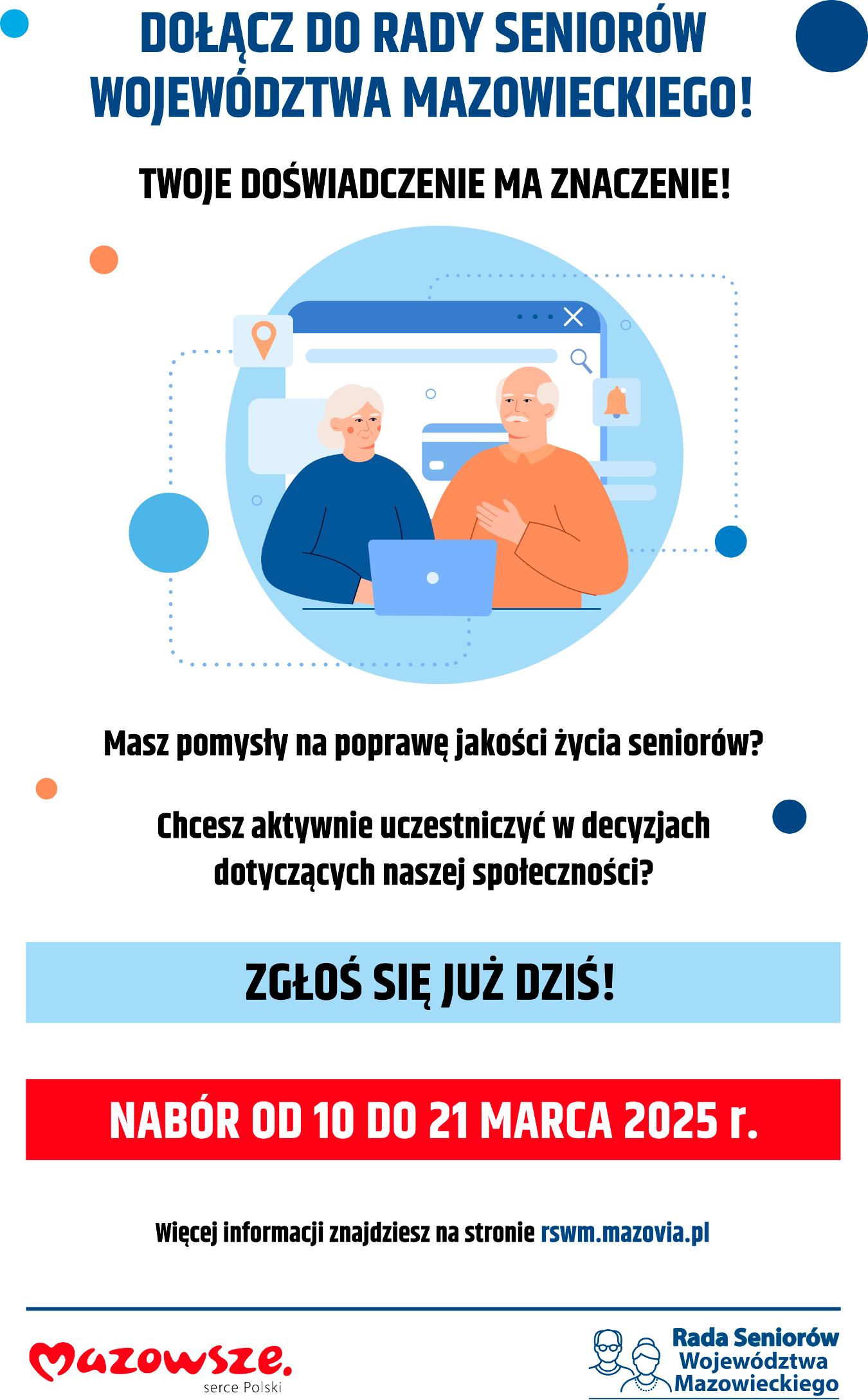 Informujemy, że rozpoczął się nabór na członków II kadencji Rady Seniorów Województwa Mazowieckiego.