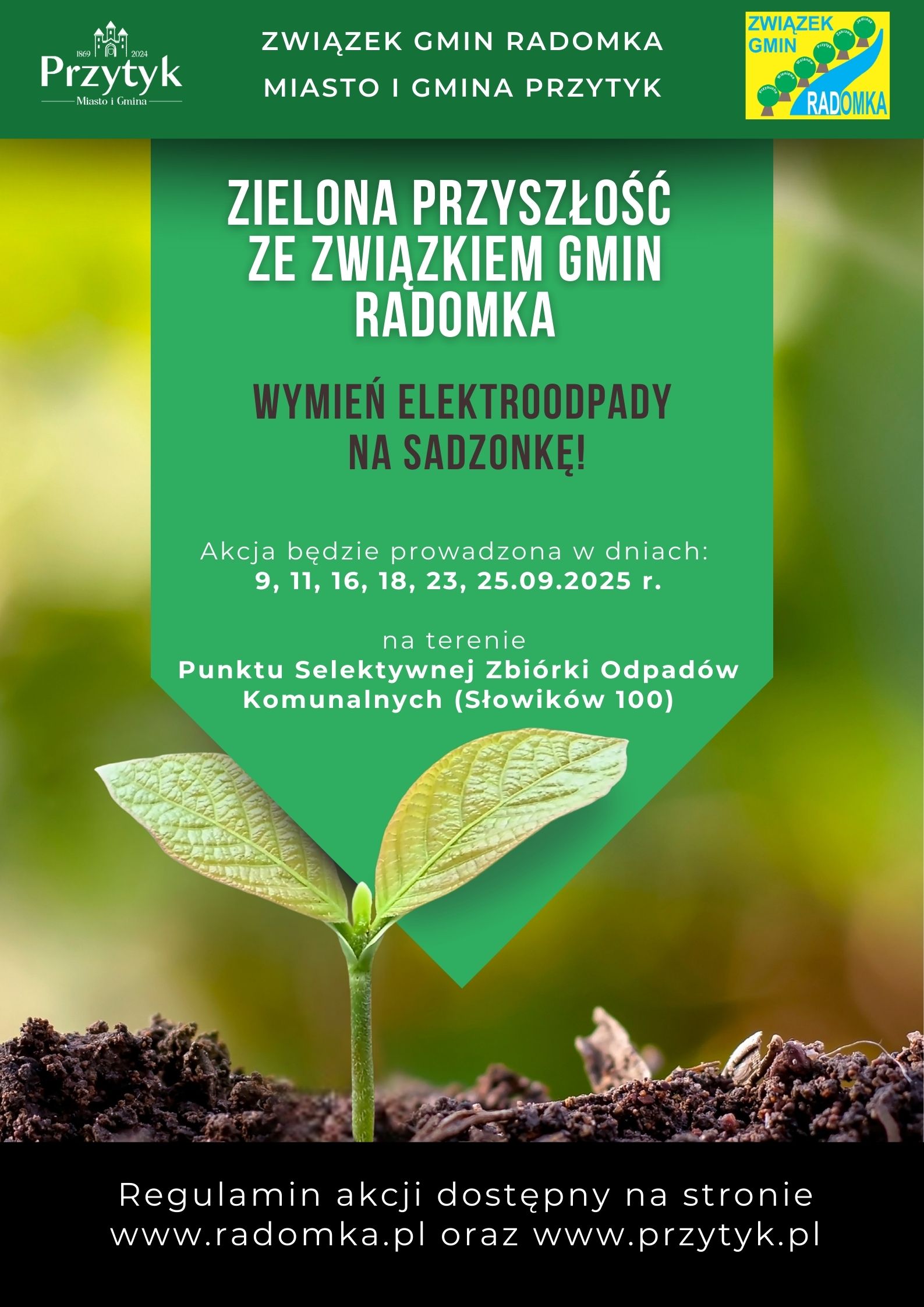 Związek Gmin Radomka wraz z Miastem i Gminą Przytyk serdecznie zapraszają mieszkańców do udziału w proekologicznej akcji, której celem jest promocja selektywnej zbiórki odpadów oraz rozwijanie postaw przyjaznych środowisku.