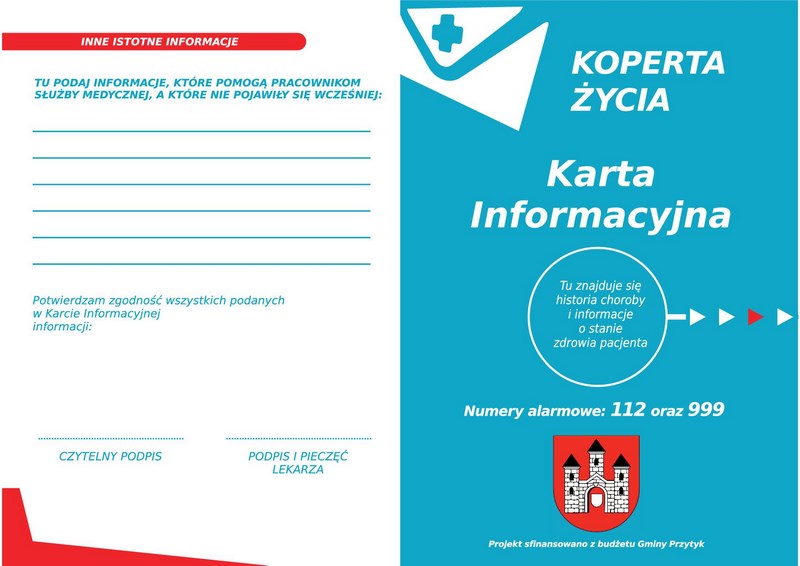 Kopertę życia oraz wszystkie informacje z nią związane można uzyskać w Urzędzie Gminy Przytyk w pokoju nr 14 (parter) telefon 48 6180095 wew. 37.