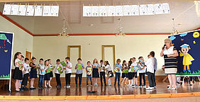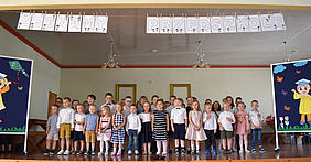Była to wzruszająca uroczystość. Dyrektor Alina Brzęczek dziękowała za współpracę nauczycielom, pracownikom szkoły i rodzicom oraz dzieciom podkreślając, że będzie pamiętać o wszystkich wspaniałych chwilach spędzonych w szkole wśród dzieci, życzliwych i pomocnych rodziców oraz kolegów i koleżanek nauczycieli. Uroczyste zakończenie roku szkolnego zakończyło się występami artystycznymi najmłodszych. Z rąk Dyrekcji przedszkolaki odebrały dyplomy i drobne upominki.
