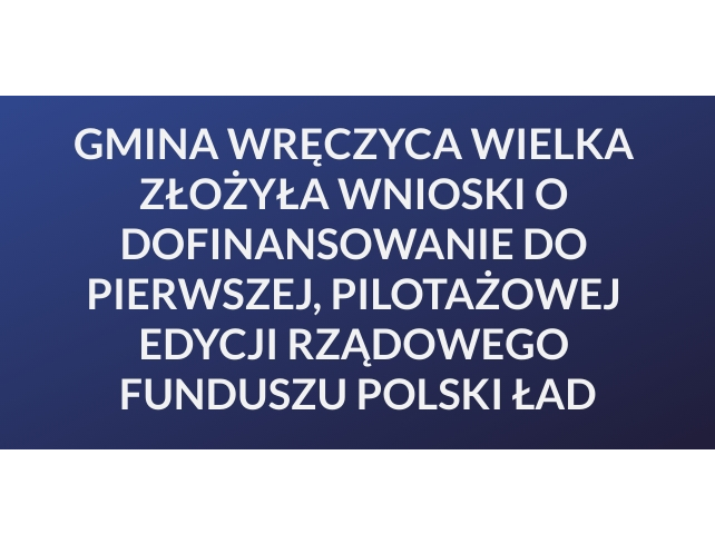 Pierwsza edycja pilotażowego naboru wniosków rozpoczęła się 2 lipca i trwała do 15 sierpnia 2021 roku. Każda z jednostek samorządu terytorialnego mogła zgłosić maksymalnie trzy wnioski o dofinansowanie (jeden wniosek bez kwotowego ograniczenia; jeden wniosek, którego wartość dofinansowania nie może przekroczyć 30 mln zł oraz 1 wniosek, którego wartość dofinansowania nie może przekroczyć 5 mln zł) Gmina Wręczyca Wielka złożyła trzy wnioski zgodnie z regulaminem.
