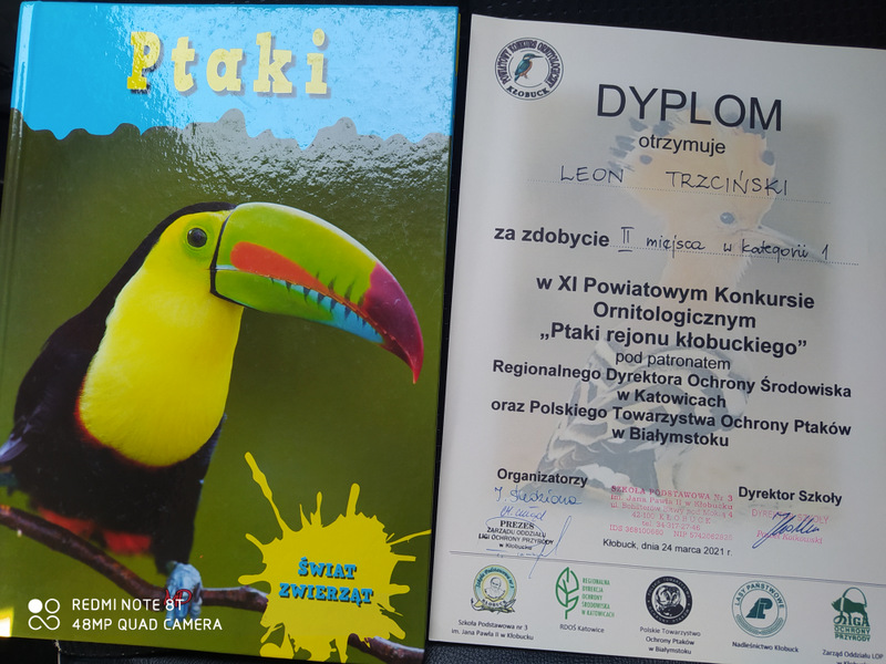 II miejsce Leona Trzcińskiego w Powiatowym Konkursie Ornitologicznym
