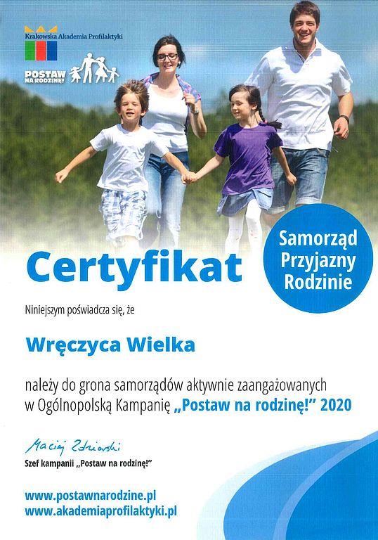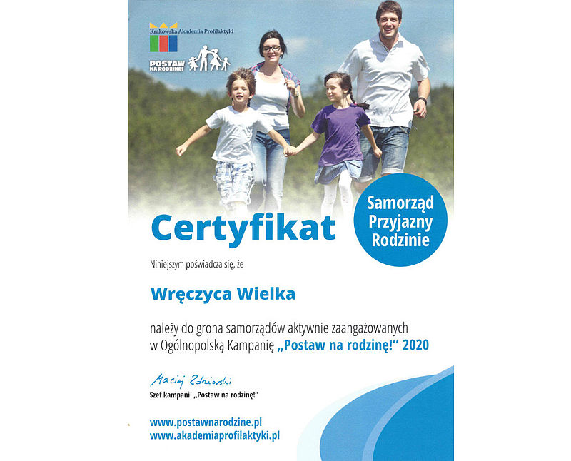 Nasza Gmina z certyfikatem Samorząd Przyjazny Rodzinie