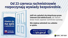 Przypominamy, że zgodnie z art. 17a ust. 1-3 ustawy o narodowym spisie powszechnym ludności i mieszkań w 2021 r. (Dz. U. z 2019 r. poz. 1775), nie można odmówić przekazania danych rachmistrzowi kontaktującemu się z osobami fizycznymi objętymi spisem.