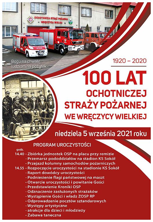 Zapraszamy na obchody 100 - lecia OSP we Wręczycy Wielkiej