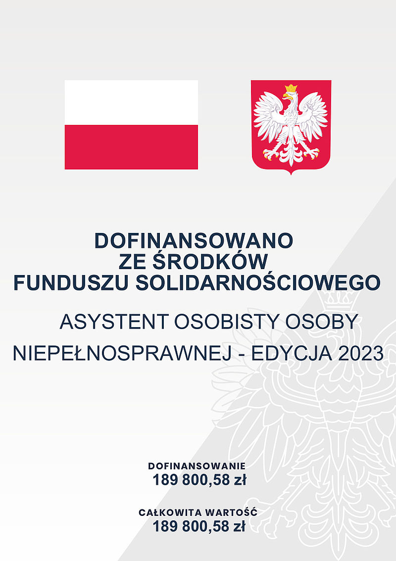 Gmina Wręczyca Wielka działająca poprzez Gminny Ośrodek Pomocy Społecznej we Wręczycy Wielkiej informuje, iż ponownie przystąpiła do realizacji Programu „ASYSTENT OSOBISTY OSOBY NIEPEŁNOSPRAWNEJ” Edycja 2023 – finansowanego ze środków FUNDUSZU SOLIDARNOŚCIOWEGO