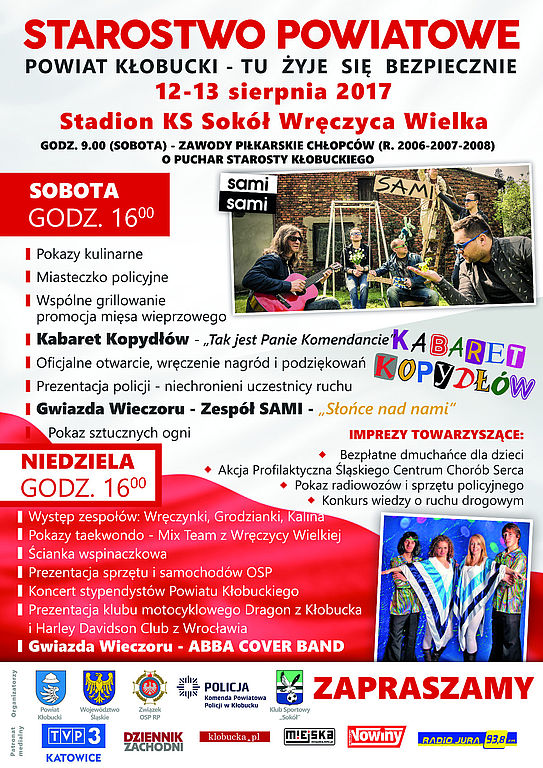 W dniach 12-13 sierpnia br (sobota-niedziela) odbędzie się impreza plenerowa POWIAT KŁOBUCKI - TU ŻYJE SIĘ BEZPIECZNIE.