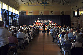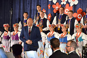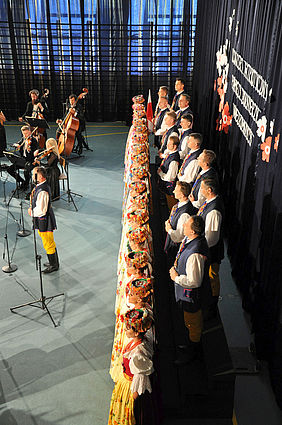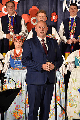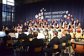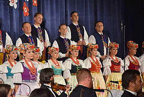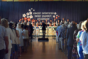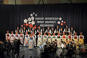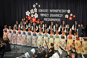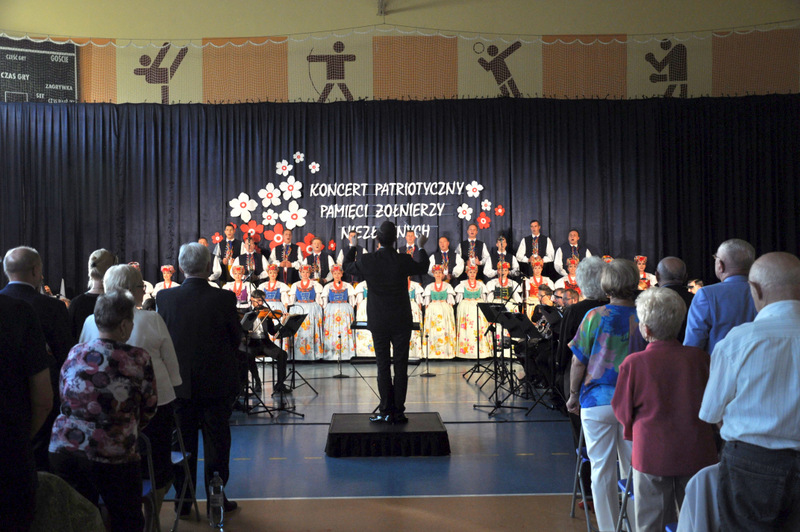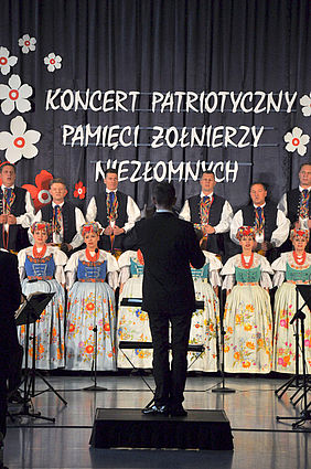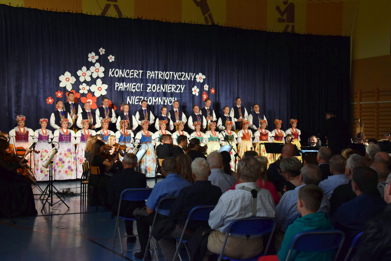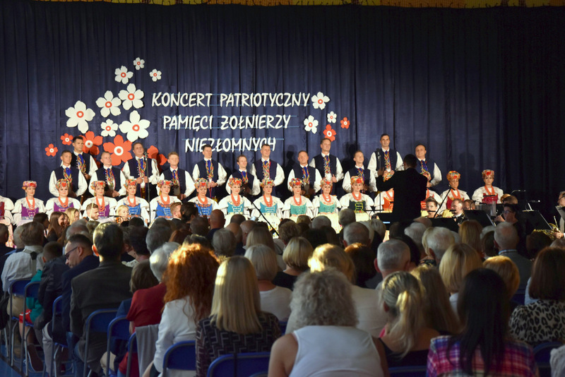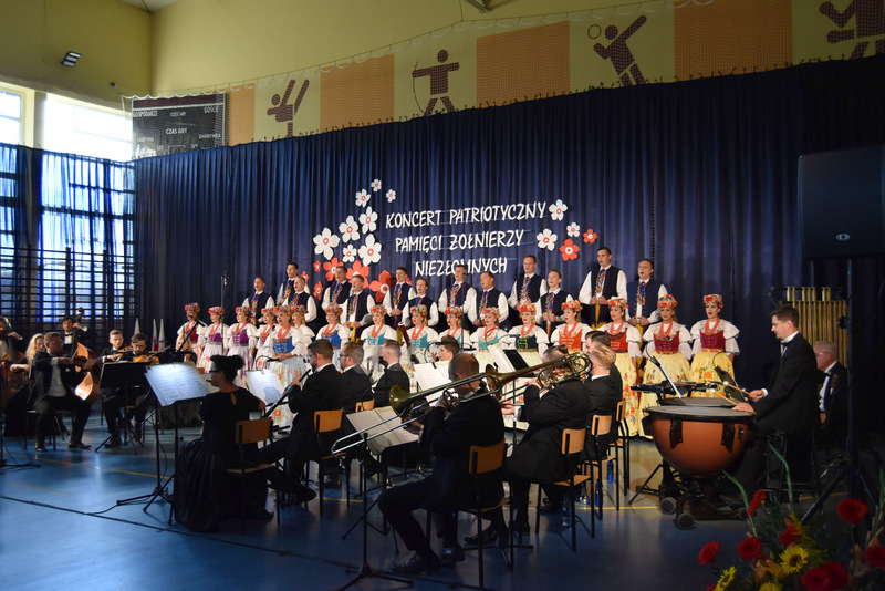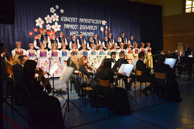 Zespół Pieśni i Tańca „Śląsk” wystąpił wraz z orkiestrą, prezentując patriotyczne pieśni. Zgromadzona publiczność doskonale przyjęła śląskich artystów. Nie obyło się bez owacji na stojąco i bisów. Wśród publiczności byli m.in. Wójt Gminy Tomasz Osiński, Sekretarz Magdalena Kasprzak, przedstawiciele biura Posła do Parlamentu Europejskiego Jadwigi Wiśniewskiej, Radni oraz Sołtysi z naszej gminy.