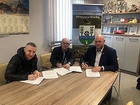 Wójt Gminy Wręczyca Wieka Tomasz Osiński podpisał umowę z przedstawicielami KS Olimpia na realizację zadania z zakresu zdrowia publicznego.