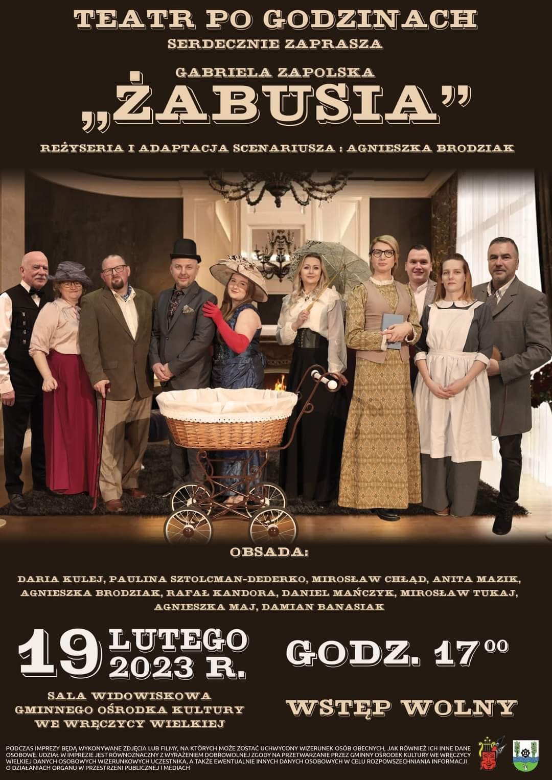 Już w niedzielę o godz.17.00 premiera spektaklu ,,Żabusia" - spektaklu o miłości, zdradzie i kłamstwie, pod Patronatem Honorowym Tomasz Osiński - Wójt Gminy Wręczyca