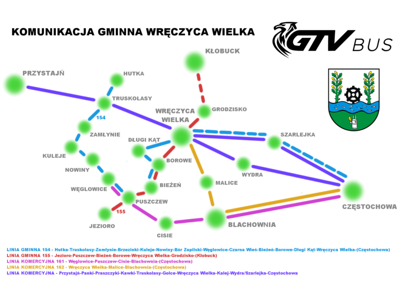 Od dnia 17 sierpnia 2020 roku (poniedziałek) rusza gminna komunikacja autobusowa gminy Wręczyca Wielka, połączona z komunikacją komercyjną poza teren gminy w kierunku ośrodków miejskich: Częstochowa, Kłobuck