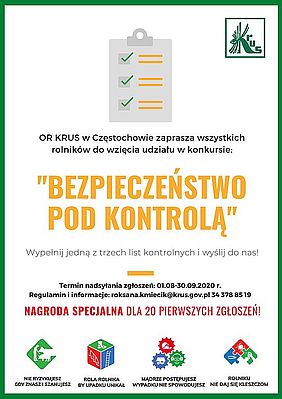 Dyrektor OR KRUS w Częstochowie Piotr Dobosz zaprasza zainteresowanych rolników do udziału w kolejnym konkursie „Bezpieczeństwo pod kontrolą".