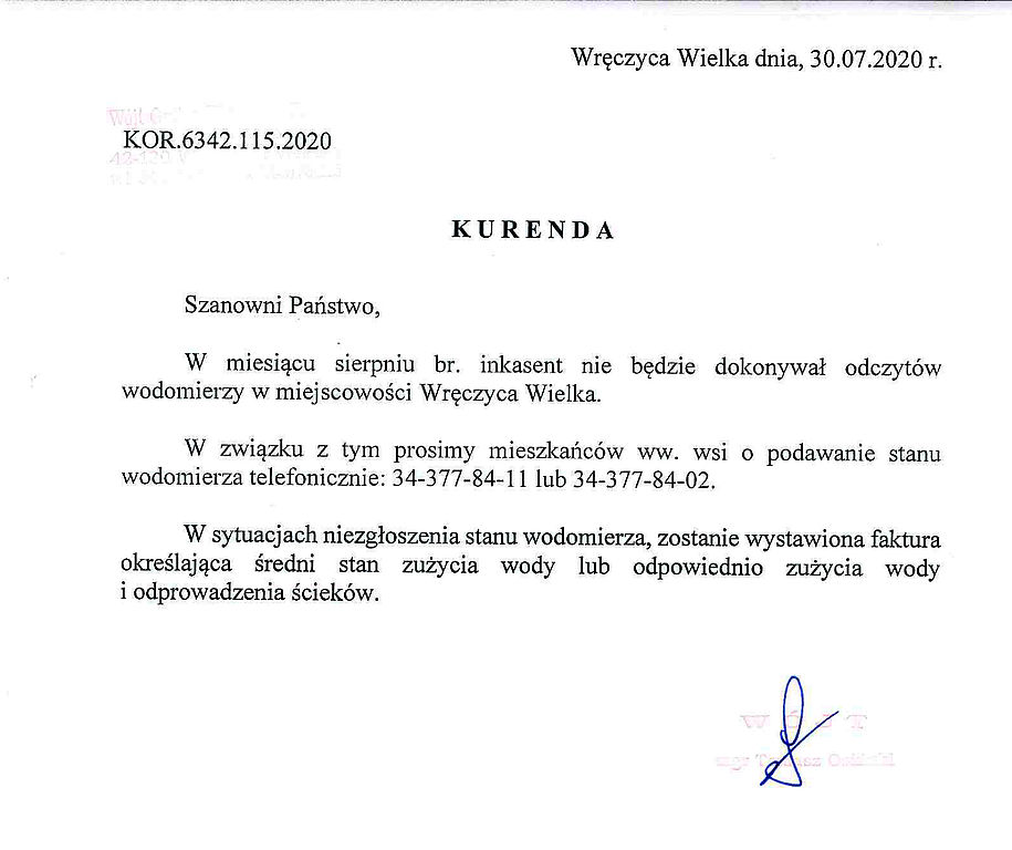 Informacje opracowane przez Gminę Wręczyca Wielka.