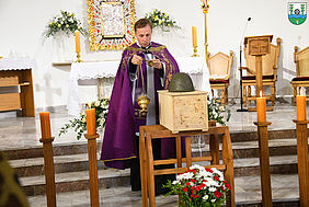 Wydarzenie rozpoczęło się uroczystą Mszą świętą w Parafii Świętego Józefa Oblubieńca Najświętszej Maryi Panny we Wręczycy Wielkiej. Mszę celebrował proboszcz parafii Robert Grohs. Po Mszy świętej na cmentarzu parafialnym odbył się pochówek w nowym, specjalnie przygotowanym grobie.