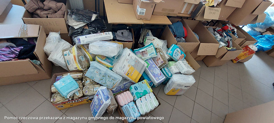 W obliczu kryzysu wywołanego wojną, zwłaszcza w pierwszych tygodniach jej trwania, Polacy masowo ruszyli do pomocy, działania podjęła również nasza gmina oraz mieszkańcy. Gmina zorganizowała zbiórki, podczas których zbieraliśmy m.in.: śpiwory, karimaty, koce, pościele, ręczniki, środki higieniczne, odzież. Jak zwykle nie zawiedliśmy się na naszych mieszkańcach. Magazyn szybko zapełnił się niezbędnymi rzeczami i produktami.